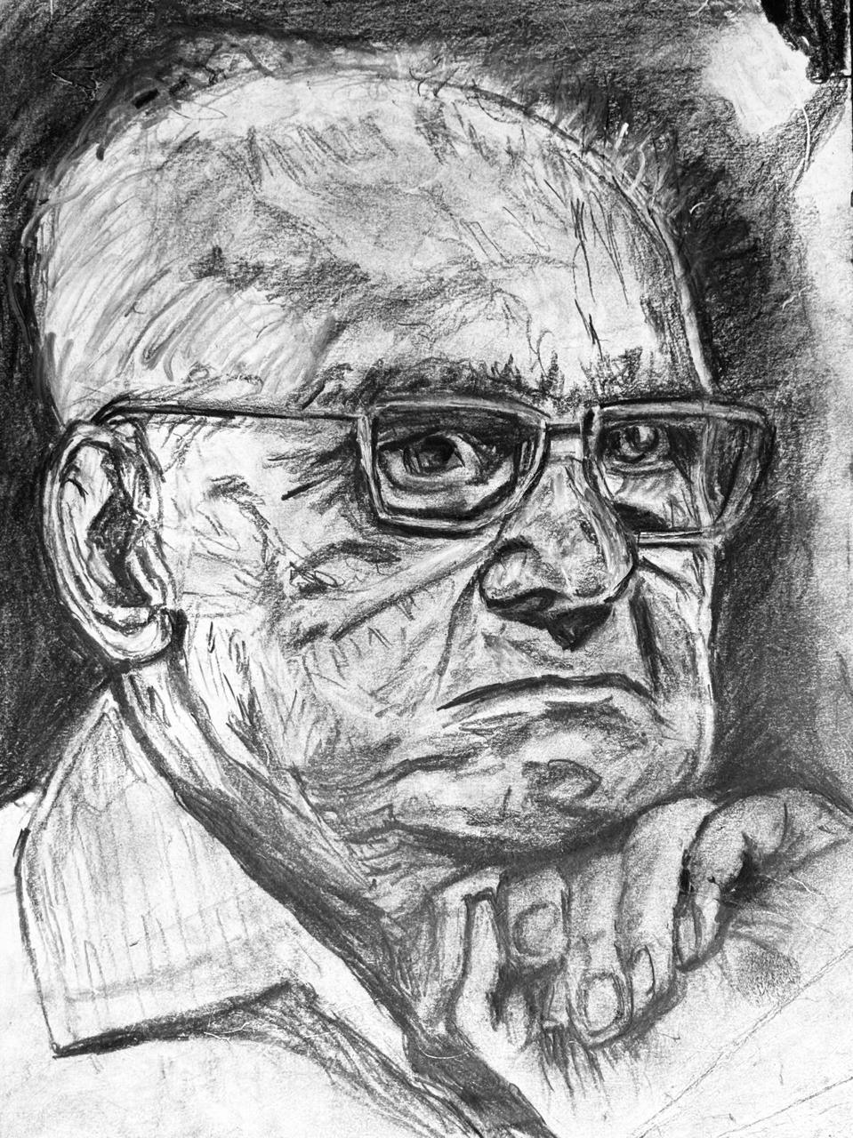 I am paying my humble tribute to the legendary writer- Dr. S.L. Bhyrappa by making the above portrait. Despite tragedies, poverty, ill treatment by his Uncle etc., he decided to chart out his own path in life, pursued higher education including a Phd and started writing novels at a very young age. He may not be the greatest writer in Kannada, but he is the most popular writer. The awards he won may be forgotten but his books will be read for a long time to come. He had small eyes but those eyes were penetrating the corners of the world as well as the space ( yaana). He did extensive reading and research before writing his books.